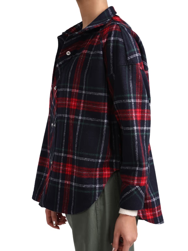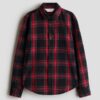 پیراهن پشمی چهارخانه با ترکیب رنگی کلاسیک قرمز و مشکی. یک آیتم ضروری و همیشگی برای استایلهای لایهلایه پاییزی و زمستانی.